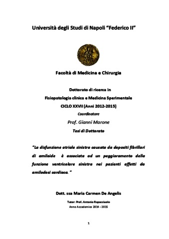 De Angelis, Maria Carmen (2015) La disfunzione atriale sinistra causata da depositi fibrillari di amiloide è associata ad un peggioramento della funzione ventricolare sinistra nei pazienti affetti da amilodosi cardiaca. [Tesi di dottorato]