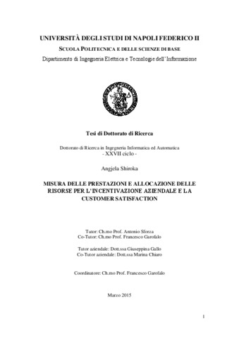 Shiroka, Angjela (2015) MISURA DELLE PRESTAZIONI E ALLOCAZIONE DELLE RISORSE PER L'INCENTIVAZIONE AZIENDALE E LA CUSTOMER SATISFACTION. [Tesi di dottorato]