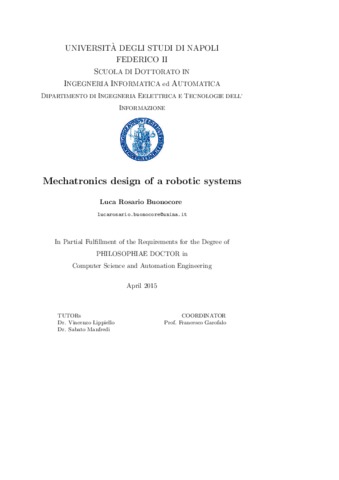 Buonocore, Luca Rosario (2015) Mechatronics design of a robotic systems. [Tesi di dottorato]