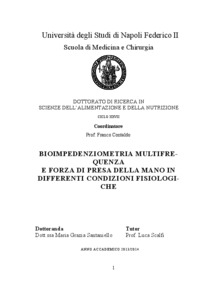 Santaniello, Maria Grazia (2015) Bioimpedenziometria multifrequenza e forza di presa della mano in differenti condizioni fisiologiche. [Tesi di dottorato]