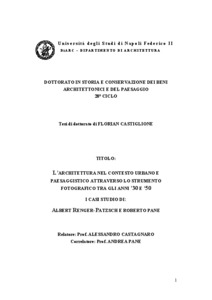Castiglione, Florian (2016) L’ARCHITETTURA NEL CONTESTO URBANO E PAESAGGISTICO ATTRAVERSO LO STRUMENTO FOTOGRAFICO TRA GLI ANNI ’30 E ‘50 I CASI STUDIO DI: ALBERT RENGER-PATZSCH E ROBERTO PANE. [Tesi di dottorato]