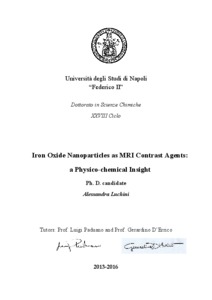Luchini, Alessandra (2016) Iron Oxide Nanoparticles as MRI Contrast Agents: a Physico-chemical Insight. [Tesi di dottorato]