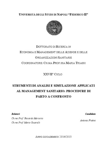 Fratini, Antonio (2016) Strumenti di analisi e simulazione applicati al management sanitario: procedure di parto a confronto. [Tesi di dottorato]