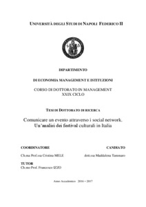 Tammaro, Maddalena (2017) Comunicare un evento attraverso i social network. Un'analisi dei festival culturali in Italia. [Tesi di dottorato]
