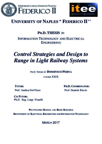 Perna, Domenico (2017) Control Strategies and Design to Range in Light Railway Systems. [Tesi di dottorato]