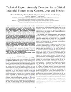 | Titolo: | Technical Report: Anomaly Detection for a Critical Industrial System using Context, Logs and Metrics |