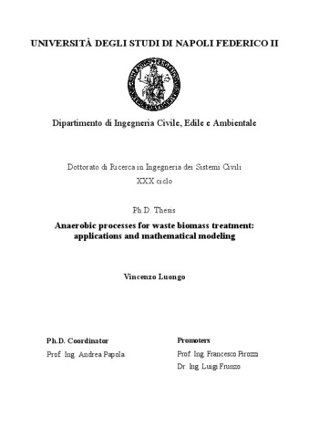 Luongo, Vincenzo (2017) Anaerobic processes for waste biomass treatment: applications and mathematical modeling. [Tesi di dottorato]