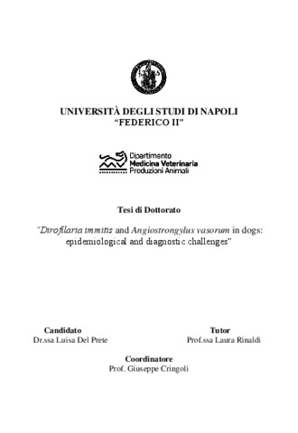 DEL PRETE, LUISA (2017) DIROFILARIA IMMITIS AND ANGIOSTRONGYLUS VASORUM IN DOGS: EPIDEMIOLOGICAL AND DIAGNOSTIC CHALLENGES. [Tesi di dottorato]