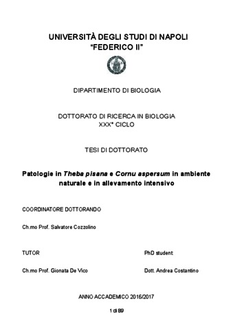 Costantino, Andrea (2017) Patologie in Theba pisana e Cornu aspersum in ambiente naturale e in allevamento intensivo. [Tesi di dottorato]