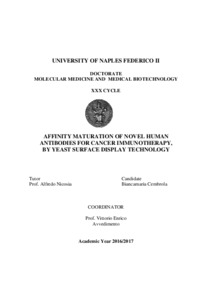 Cembrola, Biancamaria (2017) Affinity maturation of novel human antibodies for cancer immunotherapy, by yeast surface display technology. [Tesi di dottorato]