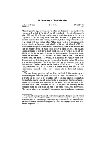 Internullo, Dario (2020) 58. Inventory of Church Textiles (P. Bas. inv. 1 C+B verso). In: Papyri of the University Library of Basel (P.Bas. II). Archiv für Papyrusforschung, Beiheft 41 . De Gruyter, Berlino, pp. 252-257. ISBN 978-3-11-068071-3