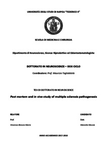 | Titolo: | Post mortem and in vivo study of multiple sclerosis pathogenesis |