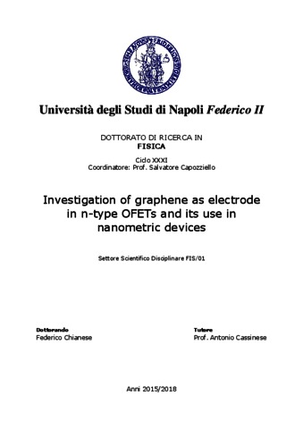 Chianese, Federico (2018) Investigation of graphene as electrode in n-type OFETs and its use in nanometric devices. [Tesi di dottorato]