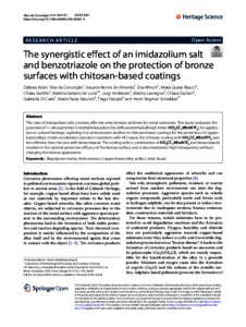 | Titolo: | The synergistic effect of an imidazolium salt and benzotriazole on the protection of bronze surfaces with chitosan-based coatings |