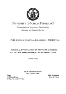 Tufano, Daniela (2020) Numerical Investigations of Innovative SI engines suitable for hybrid powertrains with reduced CO2. [Tesi di dottorato]