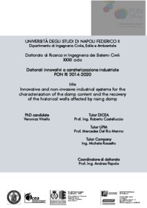 Vitiello, Veronica (2020) Innovative and non-invasive industrial systems for the characterization of the damp content and for the recovery of the historical walls affected by rising damp. [Tesi di dottorato]