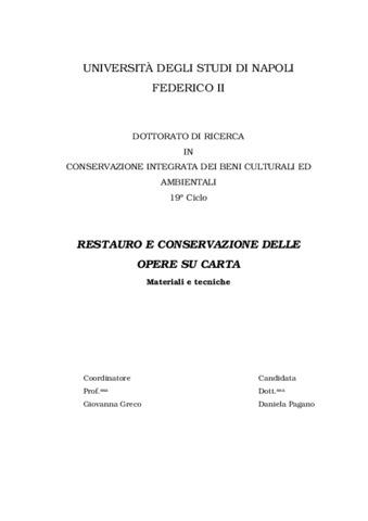 Pagano, Daniela (2007) Restauro e conservazione delle opere su carta. Materiali e tecniche. [Tesi di dottorato] (Inedito)