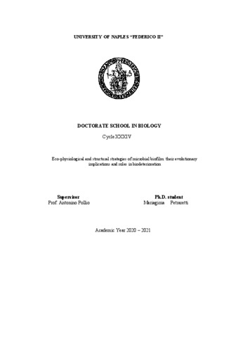 PETRARETTI, Mariagioia (2021) Eco-physiological and structural strategies of microbial biofilm: their evolutionary implications and roles in biodeterioration. [Tesi di dottorato]