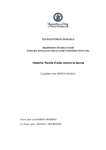 Mazza, Rocco (2022) HateViz: Parole d’odio contro le donne. [Tesi di dottorato]