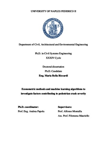 Rella Riccardi, Maria (2022) Econometric methods and machine learning algorithms to investigate factors contributing to pedestrian crash severity. [Tesi di dottorato]