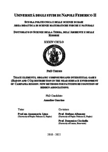 Guarino, Annalise (2022) TRACE ELEMENTS, ORGANIC COMPOUNDS AND INTERSTITIAL GASES (RADON AND CO2) DISTRIBUTION IN THE NEAR SURFACE ENVIRONMENT OF CAMPANIA REGION: NEW METHODS FOR PATTERNS RECOGNITION OF HIDDEN ASSOCIATIONS. [Tesi di dottorato]