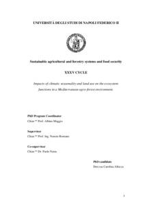 Allocca, Carolina (2023) Impacts of climatic seasonality and land use on the ecosystem functions in a Mediterranean agro-forest environment. [Tesi di dottorato]