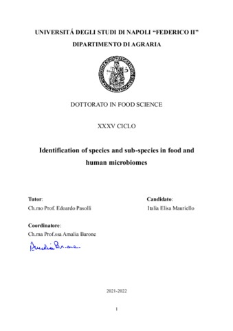 Mauriello, Italia Elisa (2023) Identification of species and sub-species in food and human microbiomes. [Tesi di dottorato]