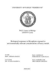 Cianciullo, Piergiorgio (2024) Biological responses in Bryophytes exposed to environmentally relevant concentrations of heavy metals. [Tesi di dottorato]