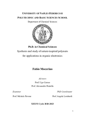Mocerino, Fabio (2024) Synthesis and study of nature-inspired polymers for applications in organic electronics. [Tesi di dottorato]