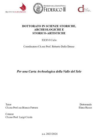 Russo, Elena (2024) Per una carta archeologica della valle del Sele. [Tesi di dottorato]