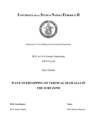 Tuozzo, Sara (2024) Wave overtopping of vertical seawalls in the surf zone. [Tesi di dottorato]