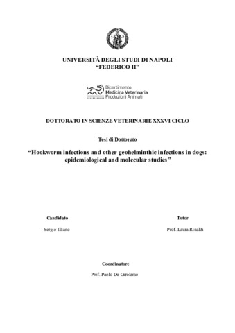 Illiano, Sergio (2024) Hookworm infections and other geohelminthic infections in dogs:epidemiological and molecular studies. [Tesi di dottorato]