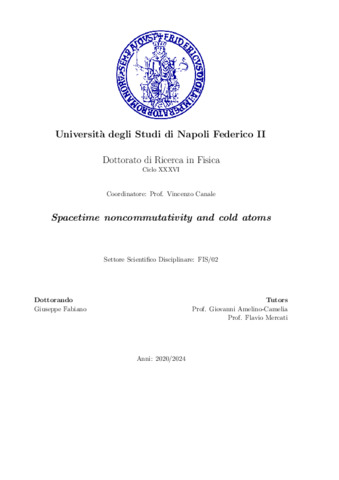 Fabiano, Giuseppe (2024) Spacetime noncommutativity and cold atoms. [Tesi di dottorato]