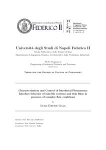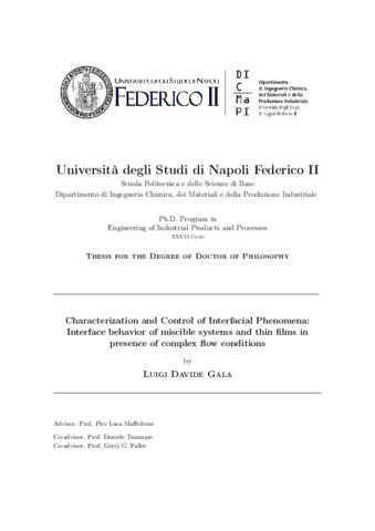 Gala, Luigi Davide (2024) Characterization and Control of Interfacial Phenomena: Interface behavior of miscible systems and thin films in presence of complex flow conditions. [Tesi di dottorato]