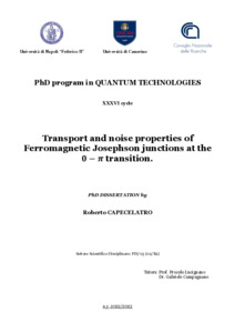 Capecelatro, Roberto (2024) Transport and noise properties of Ferromagnetic Josephson junctions at the 0 − π transition. [Tesi di dottorato]