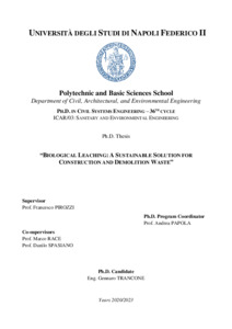 Trancone, Gennaro (2024) Biological leaching: a sustainable solution for construction and demolition waste. [Tesi di dottorato]