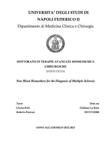 La Rosa, Giuliana (2024) New Blood Biomarkers for the Diagnosis of Multiple Sclerosis. [Tesi di dottorato]