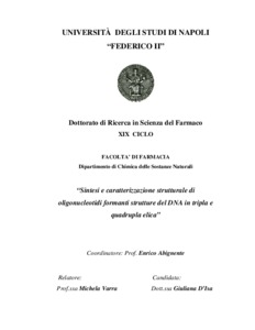 | Titolo: | Sintesi e caratterizzazione strutturale di oligonucleotidi formanti strutture del DNA in tripla e quadrupla elica |