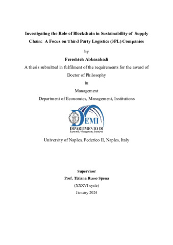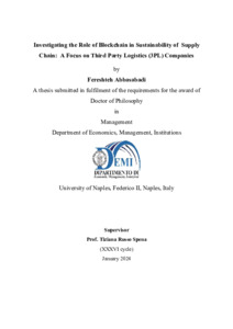 Abbasabadi, Fereshteh (2024) Investigating the Role of Blockchain in Sustainability of Supply Chain: A Focus on Third Party Logistics (3PL) Companies. [Tesi di dottorato]