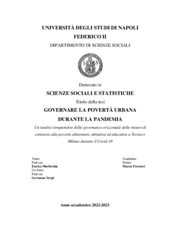 Ferracci, Marco (2023) Governare la povertà urbana durante la pandemia. Un’analisi comparativa della governance orizzontale delle misure di contrasto alla povertà alimentare, abitativa ed educativa a Torino e Milano durante il Covid-19. [Tesi di dottorato]