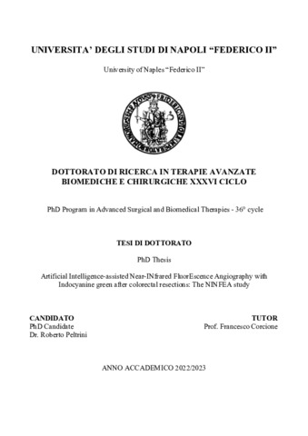 Peltrini, Roberto (2023) Artificial Intelligence-assisted Near-INfrared FluorEscence Angiography with Indocyanine green after colorectal resections: The NINFEA study. [Tesi di dottorato]
