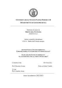 Toraldo, Giulia (2023) Aiuti di Stato e Stati di emergenza. È prospettabile un futuro per un'Unione fiscale? [Tesi di dottorato]