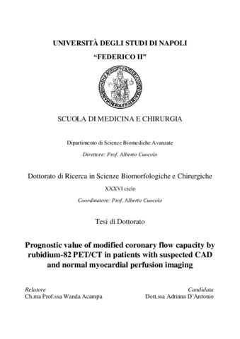 D'Antonio, Adriana (2023) Prognostic value of modified coronary flow capacity by rubidium-82 PET/CT in patients with suspected CAD and normal myocardial perfusion imaging. [Tesi di dottorato]