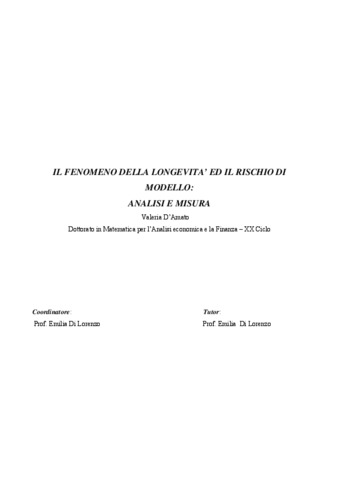 D'Amato, Valeria (2008) Il fenomeno della longevità ed il rischio di modello: analisi e misura. [Tesi di dottorato] (Inedito)