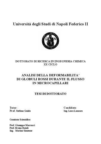 Lanzaro, Luca (2008) Analisi della deformabilità di globuli rossi durante il flusso in microcapillari. [Tesi di dottorato] (Inedito)