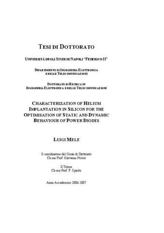 Mele, Luigi (2008) Characterization of helium implantation in silicon for the optimisation of static and dynamic behaviour of power diodes. [Tesi di dottorato] (Inedito)