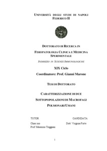 Forte, Virginia (2008) Caratterizzazione di due sottopopolazioni di macrofagi polmonari umani. [Tesi di dottorato] (Inedito)