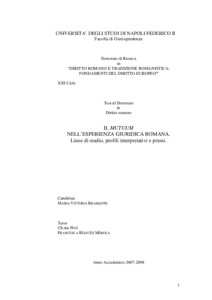 Bramante, Maria Vittoria (2008) Il mutuum nell'esperienza giuridica romana.Linee di studio, profili interpretativi e prassi. [Tesi di dottorato] (Inedito)
