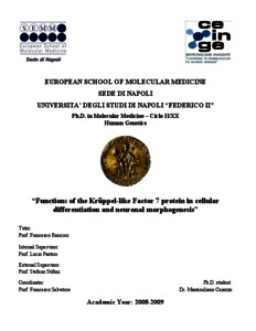 | Titolo: | Functions of the Krüppel-like Factor 7 protein in cellular differentiation and neuronal morphogenesis |