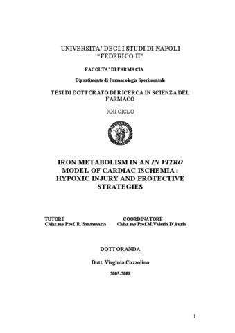Cozzolino, Virginia (2008) IRON METABOLISM IN AN IN VITRO MODEL OF CARDIAC ISCHEMIA : HYPOXIC INJURY AND PROTECTIVE STRATEGIES. [Tesi di dottorato] (Inedito)